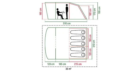 Die Sonneneinstrahlung wird vom Obermaterial aufgefangen und hilft Ihnen damit, eine angenehme Schlaftemperatur im Inneren des Zeltes zu halten.