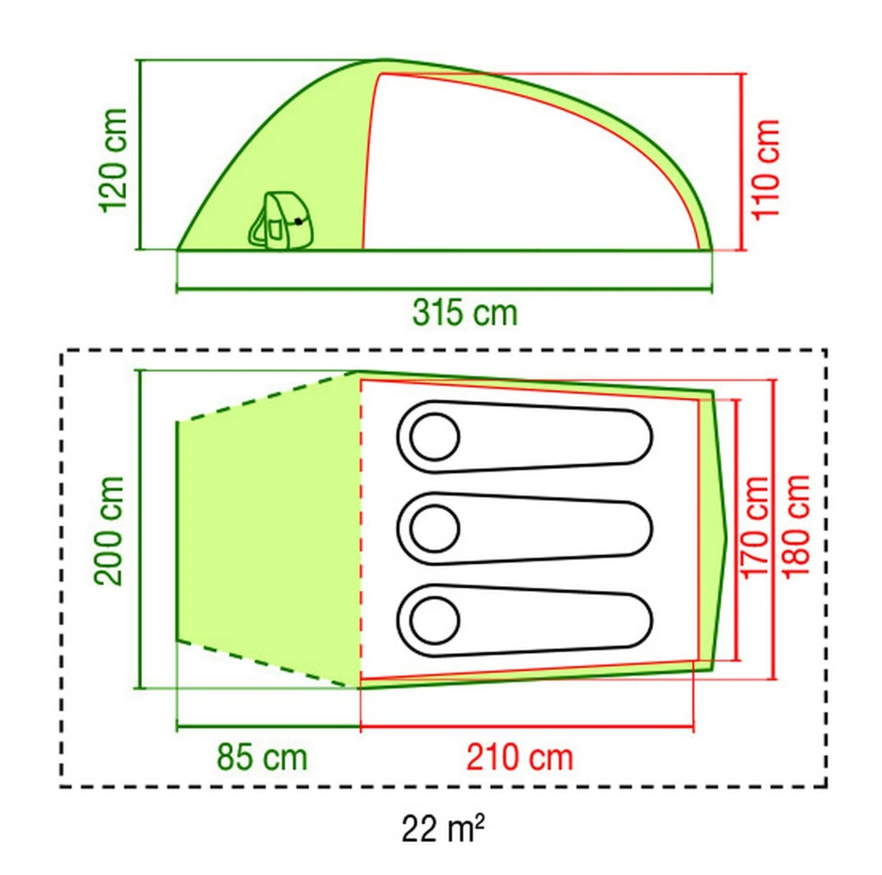 Innenzelt: 100 % Polyester, atmungsaktives Polyester 68 D 185 T und blickdichtes Moskitonetz