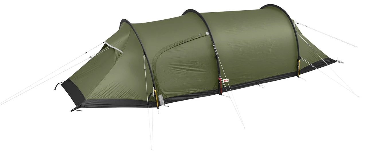Das Keb Endurance 2 von Fjällräven ist ein extrem robust und zuverlässig entwickeltes Ganzjahres-Zelt, was extra für den Einsatz unter schwierigen Wetter- und Geländebedingungen entwickelt wurde. Die allgemeine Größe und die Höhe sorgen für sehr guten Komfort, was sich vorallem an Schlechtwettertagen bewährt. Das Modell ist ideal für anspruchsvolle Wintertouren und das Übernachten oberhalb der Baumgrenze geeignet aber auch genauso gut geeignet für sommerliche Tage. Er passt dank seines relativ geringen Gewichts dennoch in den Wanderrucksack. Außerdem wurde es so entwickelt, das die Verstelldetails und die Reißverschluss-Griffe so groß bemessen sind, dass sie sich auch mit Winterhandschuhen greifen und verstellen/aufbauen lassen. Die extra langen und breiten Heringe eignen sich perfekt für schwieriges Gelände. Reflektoren an den Lüftern und Türen vereinfachen das Auffinden des Zelts im Dunkeln. Außerdem verfügt es über viele weitere Highlights und Features und ist zudem PVC-Frei und ohne giftige Flammschutzmittel hergestellt worden. Die Imprägnierung ist fluorcarbonfrei.