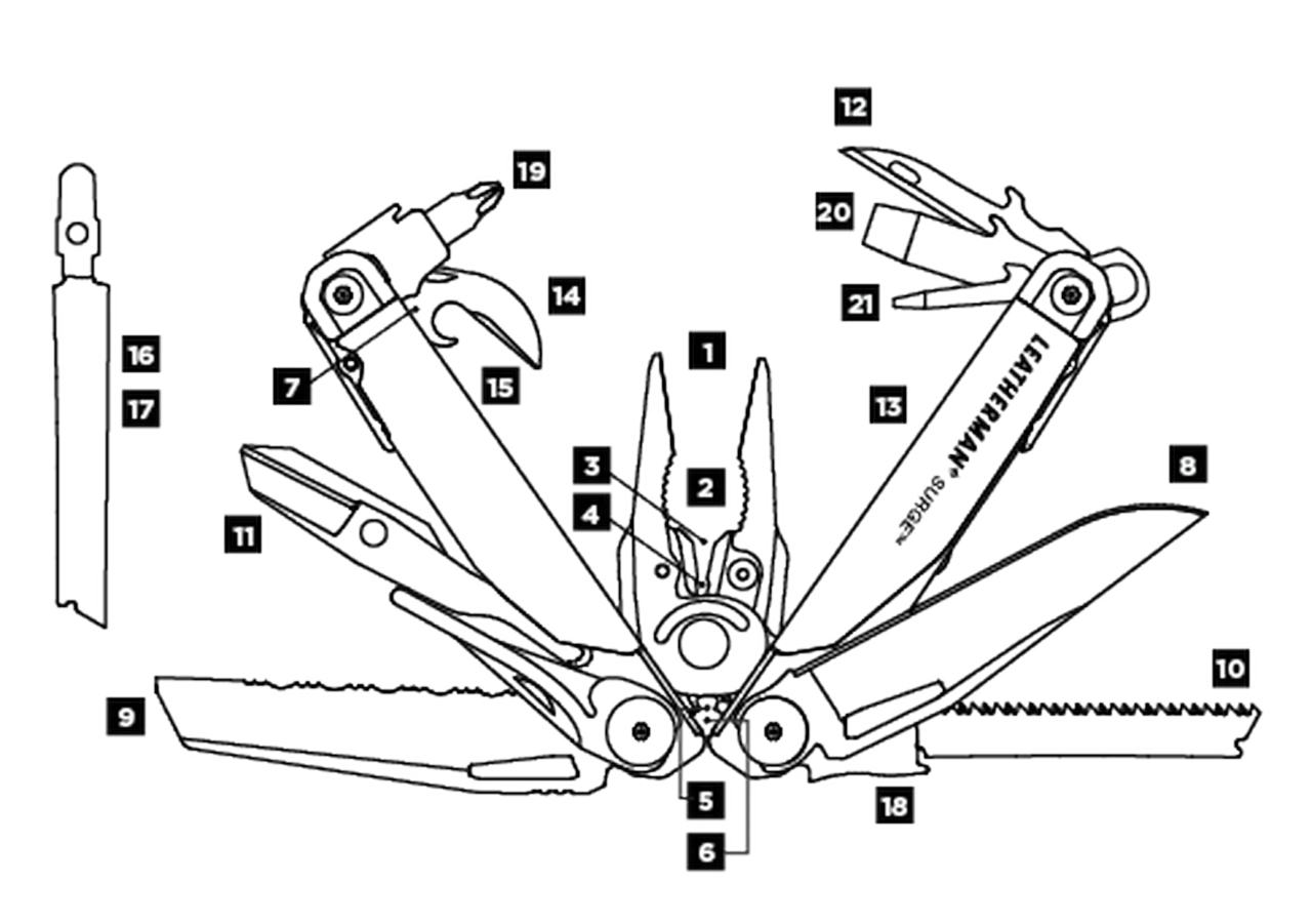 Das SURGE® von Leatherman ist eines der vielseitigsten Multi-Tools, ein echtes Kraftpaket, ausgerüstet mit Leathermans größter Zange, den längsten Multi-Tool-Klingen und einfacher Handhabung. Schnellen Zugriff auf alle Tools und vielseitige Werkzeuge, auswechselbare Drahtschneider und vier von außen zugängliche Klingen, erleichtern dir jede Arbeit. Das SURGE® ist genau das richtige Tool für komplizierte Aufgaben aller Art.