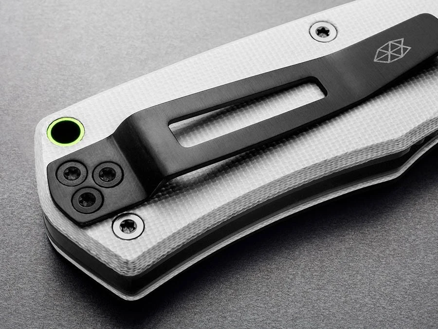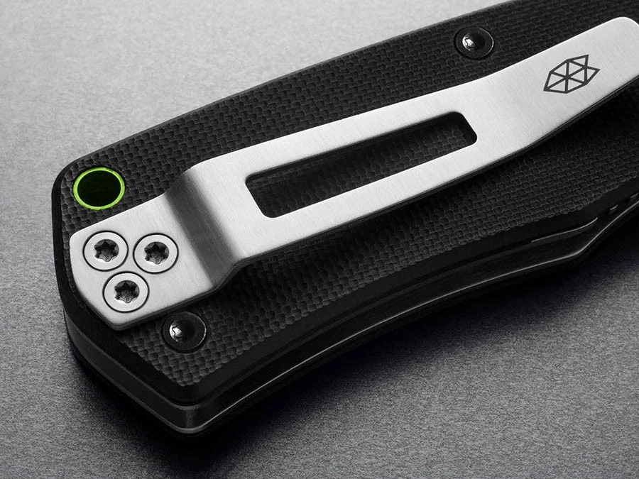 Ein dreieckiges Daumenloch und ein umkehrbarer Clip ermöglichen auch eine links- oder rechtshändige Konfiguration.