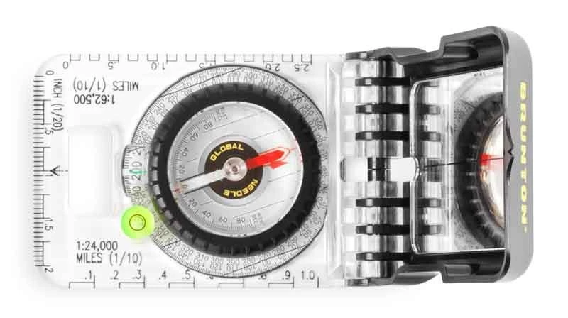- TruArcTM Global Needle; Ever-North Magnet; Map Magnifier; Sighting Mirror; Bubble Level; Clinometer; Magnified Readout; 1° Resolution.