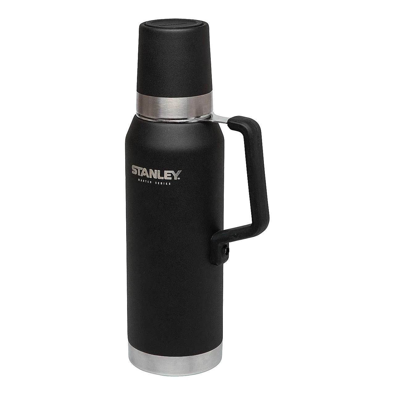 Die Stanley Master Vacuum Bottle 1.3 Liter ist ein toller Begleiter im Alltag oder auf Reisen. Die Wandstärke des 18/8 Edelstahlkorpus beträgt außergewöhnliche 1,0 mm und sorgt in Verbindung mit der vierschichtigen QuadVac Vakuumisolierung für hervorragende Leistungen. Nicht nur bis zu 40 Stunden heiß, sondern auch bis zu 35 Stunden kalt. Der ebenfalls Vakuum isolierte Verschlussbecher aus 18/8 Edelstahl hält deinen Kaffee oder Tee ca. 20 min heiß. Für eine edle Optik, sorgt die matt schwarze Oberflächenbeschichtung. Der robuste aber dennoch angenehm zu tragende Stahlgriff ist silikonummantelt. Alle Teile sind spülmaschinenfest und selbstverständlich BPA frei.
